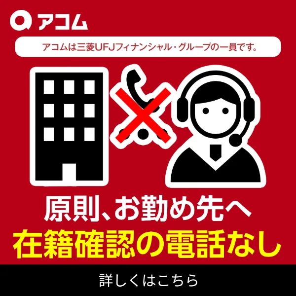 アコム:原則、電話での在籍確認はせずに書面やご申告内容での確認を実施します。もし実施が必要となる場合でも、お客さまの同意を得ずに実施することはありませんので、ご安心ください。