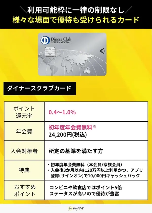 本コンテンツで紹介している商品は全て金融庁の貸金業者登録一覧に記載ある事業者が提供するものです。コンテンツ内で紹介する商品の一部または全部に広告が含まれています。しかし、各商品の評価や情報の正確さに一切影響する事はありません。また、広告によってユーザーの皆様の選択を阻害することがないよう、客観的な視点や基準で商品を紹介・評価しております。当コンテンツは株式会社ゼロアクセルが管理を行なっております。クレジットカードおすすめのランキングはポイント還元率や機能性、ポイントの還元率、キャンペーン、旅行障害保険、キャッシング、発行スピード、利用者の口コミなどを独自に点数にしております。詳細は広告ポリシーと制作・編集ガイドラインをご覧ください。