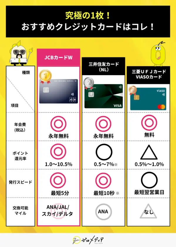 本記事で紹介するクレジットカードはゼロメディアの独自調査に基づいています。詳しくは各クレジットカードの評価基準とランキング根拠を参照ください。