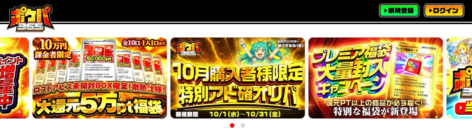 また、還元率の高さも魅力で、総還元率100%のボーナスオリパも多数展開。PSA10鑑定済みの高額カードや未開封BOXが当たるチャンスもあります。