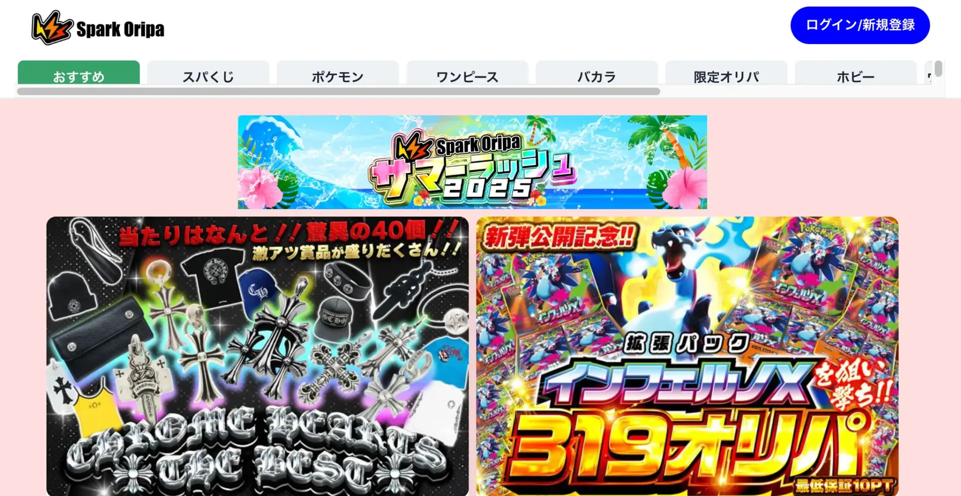 登録が完了したら、サイト内でどんなオリパがあるかチェックしてみましょう。